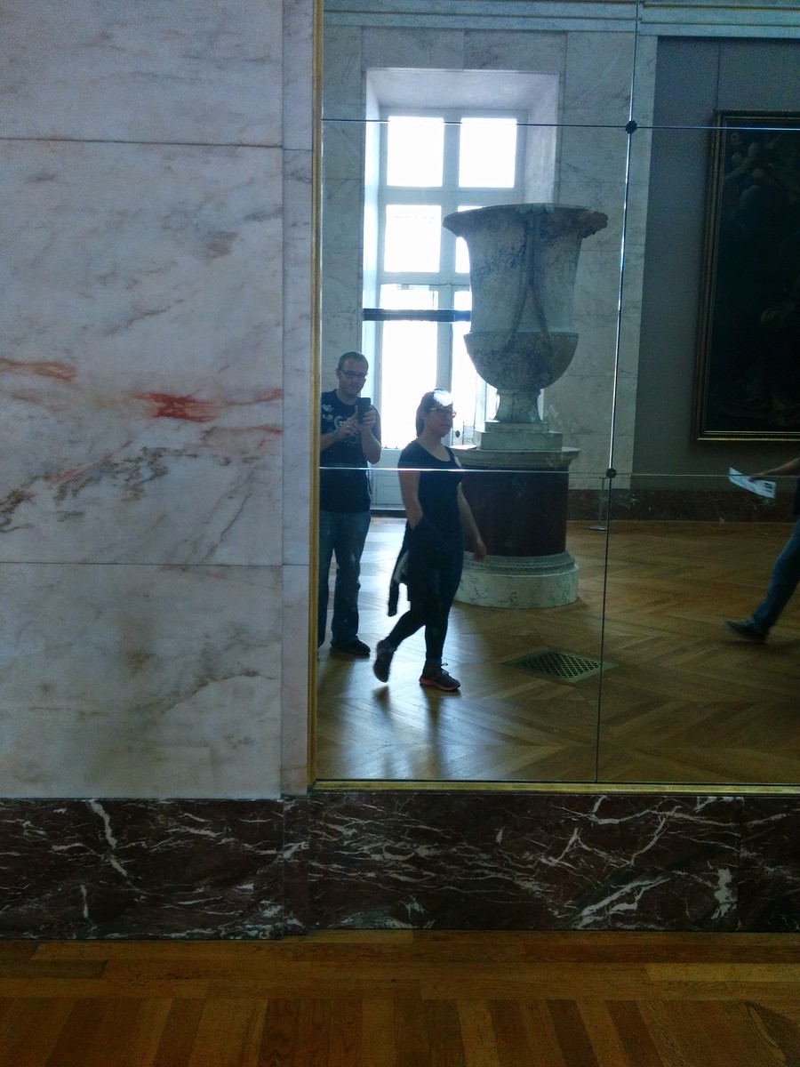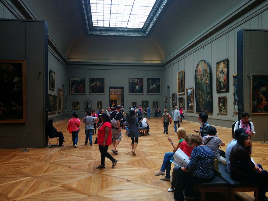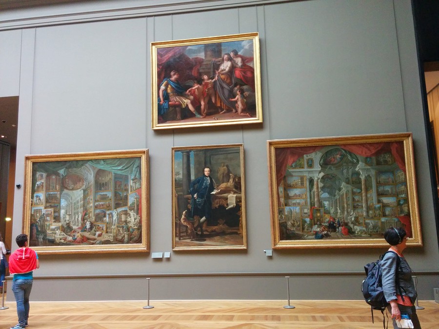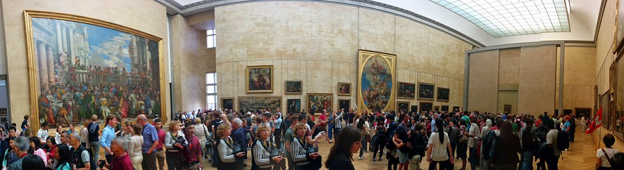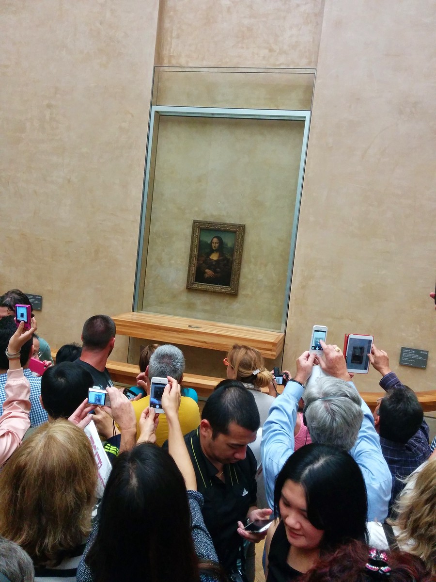 And of course no first-time visit to the Louvre could be complete without seeing the Mona Lisa! Around the Mona Lisa there were hundreds of people! The painting is small, as many of you know. What’s funny is it sits directly across from a huge painting that no one really paid attention to. I found it quite humorous that no one was looking at the giant painting across from it, it was almost sad. All this other artwork there gets bypassed because the Mona Lisa is famous, as is its painter.