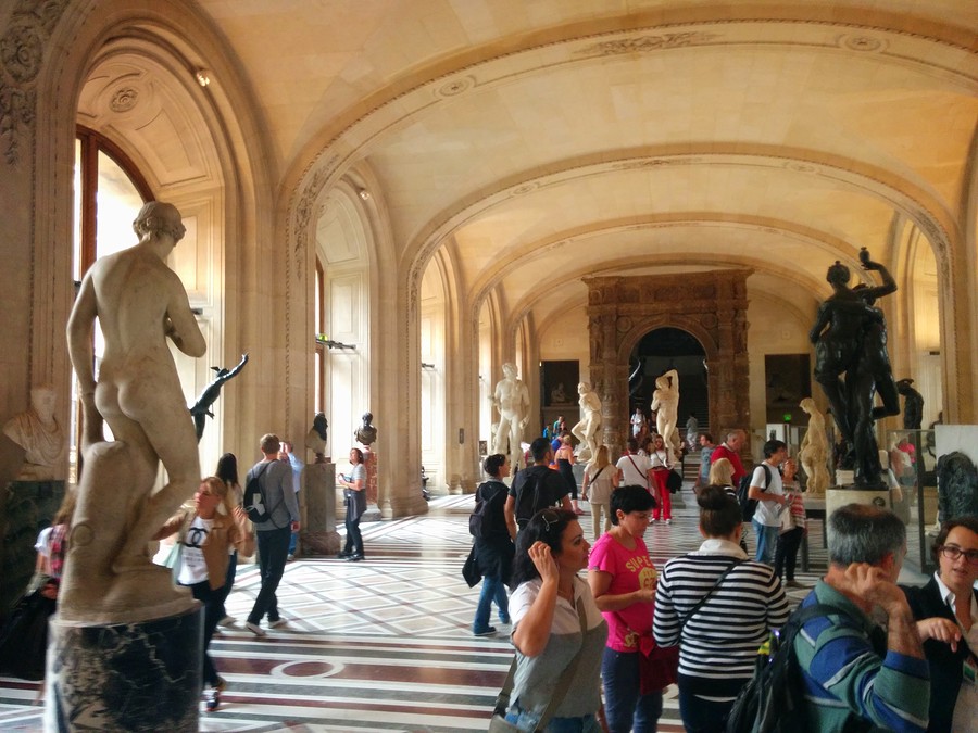 We eventually made our way back to the hotel and the next morning we awoke early to go to the Louvre! At the Louvre the lines were even crazier than at the Eiffel Tower! Luckily the lines moved quickly, and we were soon inside. We started out by visiting the Egyptian exhibit. We saw mummies, sarcophagi, ancient tools, and several works of art. From there we made our way to the area with all the statues. There were some pretty interesting ones.