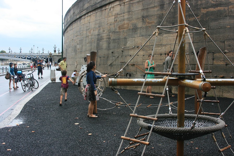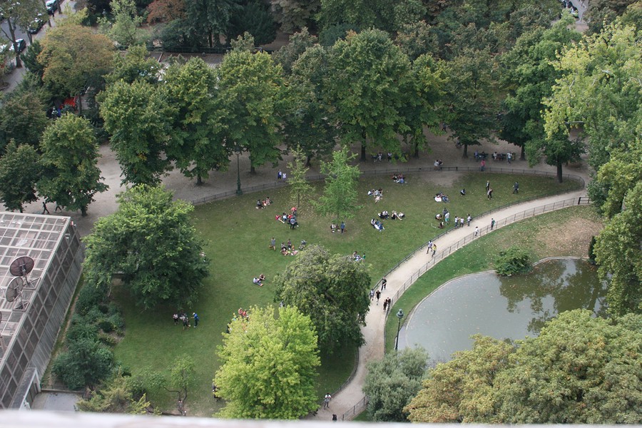 From the top we could see many people enjoying the park down below, we could also see an interesting combination of lush greenery and urban structures.
