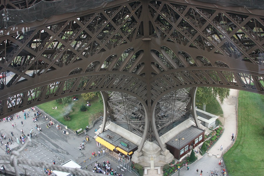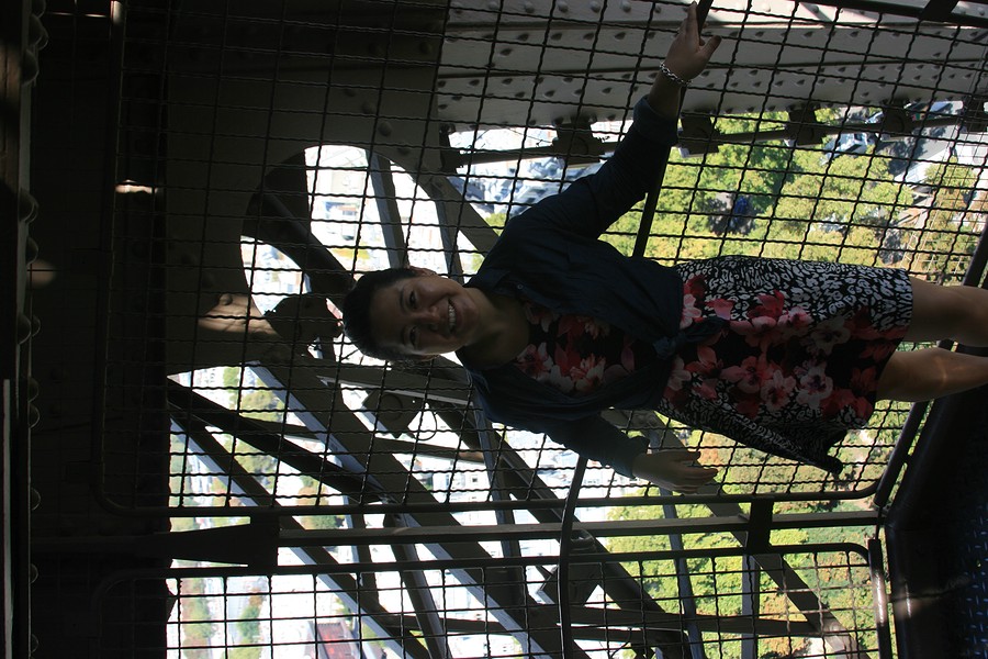 At the Eiffel Tower we looked around, there were long lines everywhere! I am not a fan of long lines, but I will wait in them when the situation dictates. So there were lines at three of the corners I believe. At two of them they were lines for the elevator, well what kind of wusses take the elevator? We promptly walked to the line for the stairs! We paid a few bucks and up we went! Being the OCD guy I am, I counted the steps. There were 330 steps from the ground to the first floor observational platform thingie. We of course took lots of pictures the whole way up! I took pictures of the views, and of course Ziqin took pictures of us!