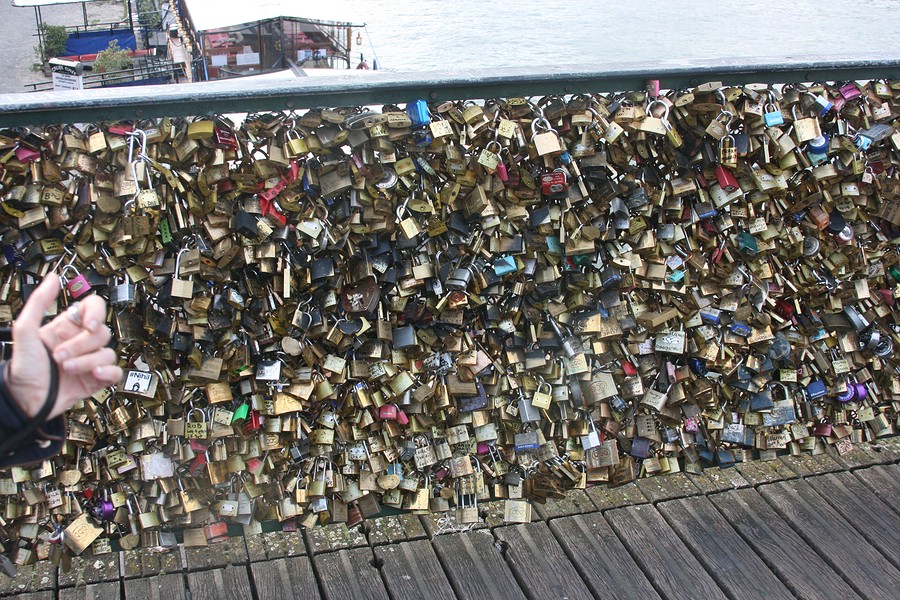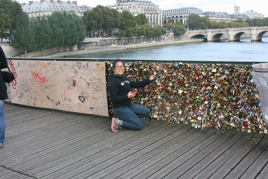 After that we were much in need of nourishment! We went and found some delicious (though a bit overpriced) crepes to eat, and then we walked around some more. We walked over to the bridges that are covered in the locks of couples who wanted to leave their mark on Paris. I have heard that the locals hate these locks, so I apologize that my wife and I added our own lock there.
