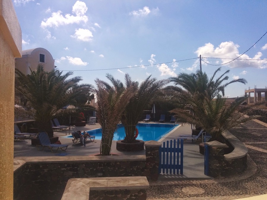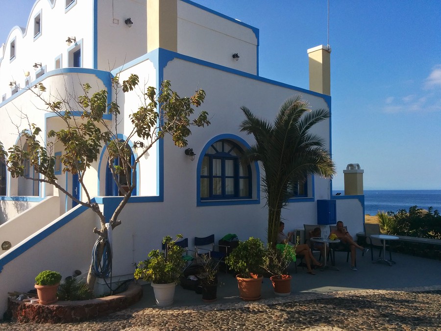 The hotel is family-run, and the father of the family was very nice and drove us back to the ferry after we checked out, and he also drove us into town on our second day on the island. They spoke English very well also, there was no communication barrier as we had in other places we stayed during out trip. The price at the hotel varies from season to season, during September it is the middle price, 70 EUR per night (about 88 USD as of this post), during the off season (November through February if I remember correctly) it is 60 EUR per night, and during the high season (March through July or August) it is 90 EUR per night. This is far cheaper than the very expensive hotels over in Fira (the main city) that don’t have an accessible beach but do have a nice view. Also, our hotel was fairly small, consisting of two buildings with a total of maybe 12 rooms, which added to the charm and comfort.