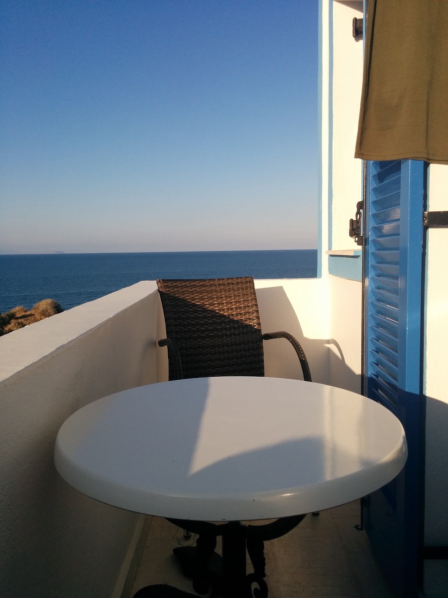Our hotel was amazing. The service was amazing, the view was amazing, the balcony very comfortable, it had a swimming pool, they gave us free drinks (but charged us 1 EUR per 1.5 L bottle of drinking water, which still wasn’t a bad price) and we were right on the ocean and a five minute walk from a good restaurant and a great beach that had few people.