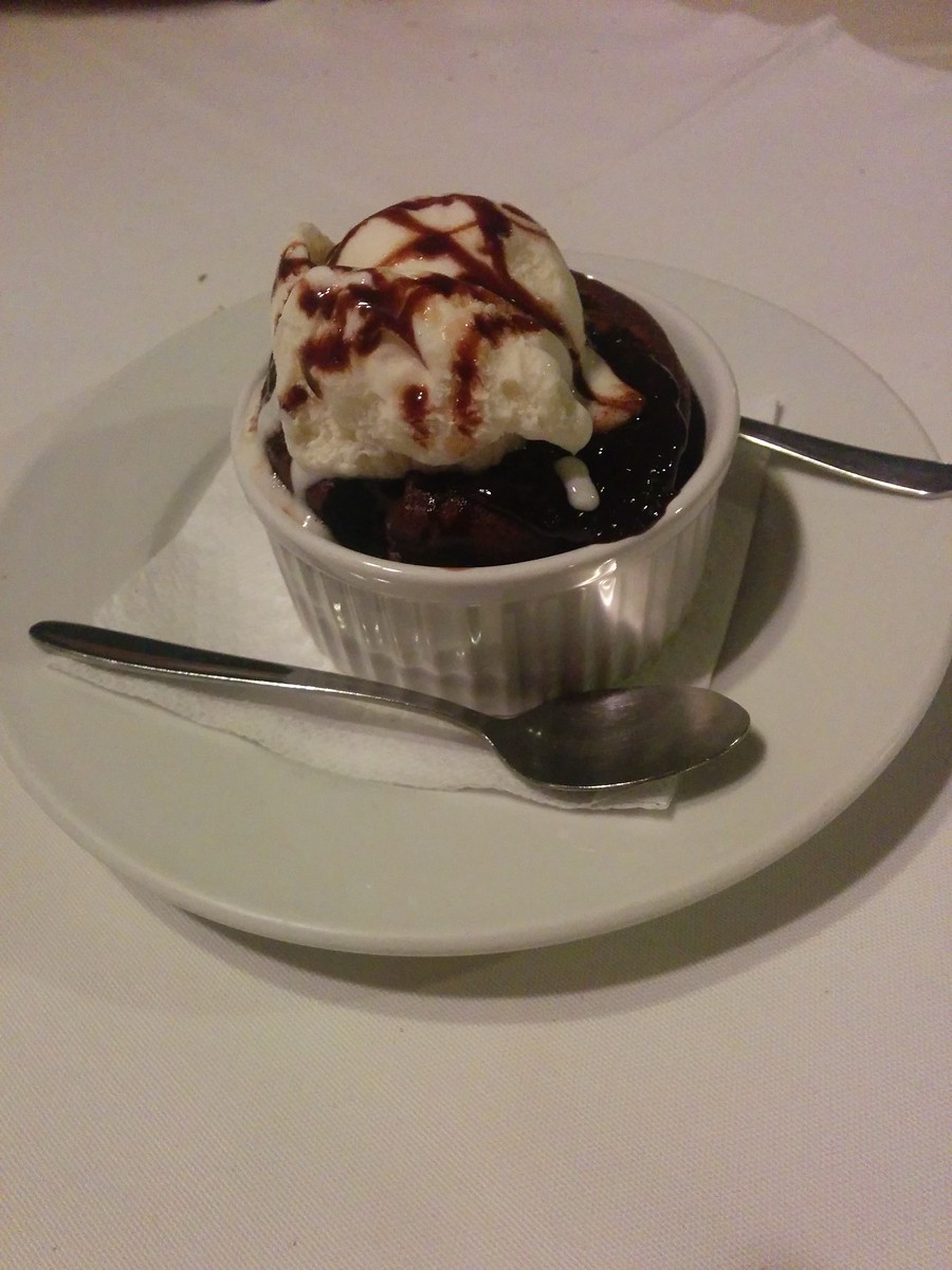 So we had some turf. We had this big plate of grilled meats. I would not say it’s surprisingly delicious, but was satisfactory for a carnivore like me. The dessert was actually very chocolatey.