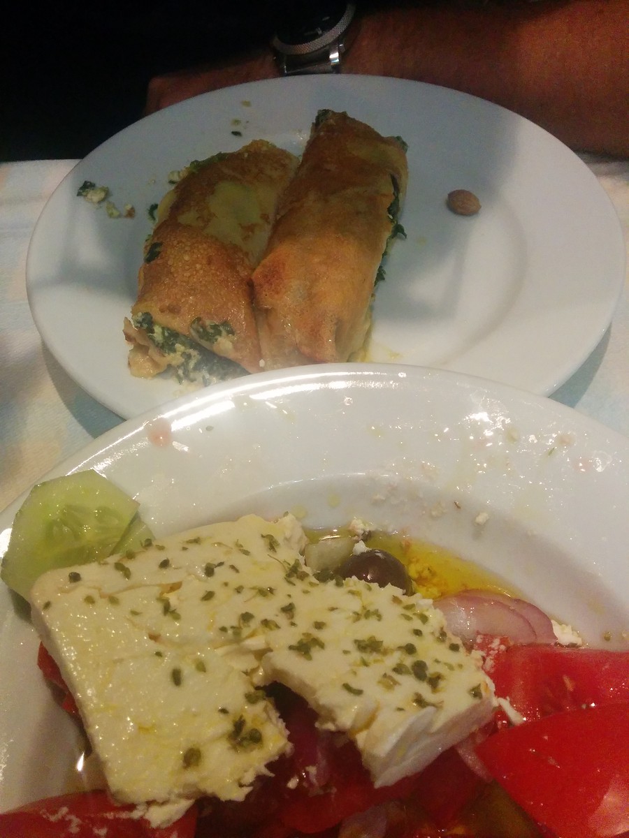 One signature food that you cannot miss in Greece is the grape-leave wrap. It’s simple, but surprisingly yummy. As the name says, it is flavored rice wrapped in grape leaves. The rice tasted like sushi rice you have at a a sushi bar.