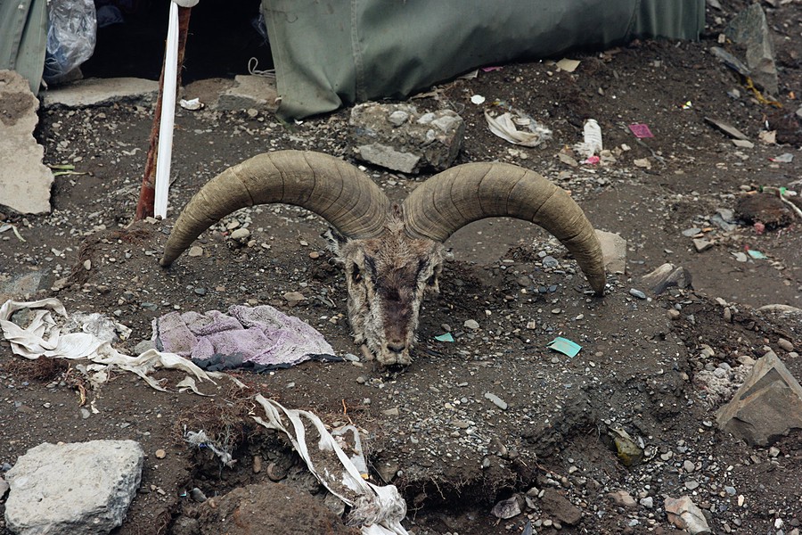Todd was still hiking down with some others when I got here. The owner of the tent helped us make the beds. One thick layer of sheet and one heavy cover with an extra blanket. When I slid under the two layers of covers, I felt I couldn’t breathe, they were so heavy! My stomach was still bothering me so I took some medicine and hot water. Todd was perfectly all right, and he attributed this to his early years of hiking high mountains. There was a birthday party at another tent, we were invited but I was not feeling so good, Todd wanted to stay with me. So we went to sleep earlier. Well, not much you can do besides going to sleep early. Oh boy, that night turned out to be such a long night. I think I woke up every 10-20 minutes, either because of head/stomachache or the feeling of hard breathing. After numerous rounds of waking-up, falling asleep, it was finally dawn. Now here comes another problem. Where to use the toilet? The owner told me outside the tent….