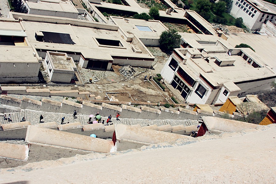 We had to go through the security check from a side gate to get into the yard of the Palace, where our tour guide briefed us on the history and the functions of the Potala Palace. The white Palace serves as the living rooms and offices for political events, while the red Palace is composed of the holy stupas for several Dalai and Buddha‘s palaces. To get inside of the Palace, one had to climb up all the stair leading to the entrance of the main gate.