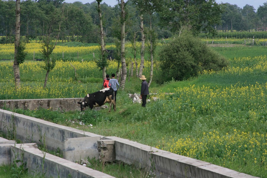 We stayed the night in Gansu province and the next day we drove back to Xining city, which is where we are now. On the way back we stopped at many sites to check out the scenery. We also stopped at a field of rape flowers (from which rapeseed oil is made). During the right time these flowers are all in bloom and from the right vantage point you can see seas of yellow flowers.